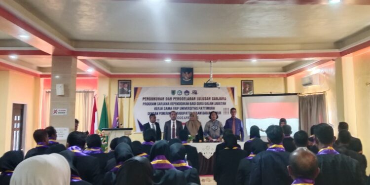 Pengukuhan dilakukan setelah puluhan guru tersebut berhasil menyelesaikan studi program pendidikan sarjana pendidikan guru dalam jabatan di Universitas Pattimura (Unpatti).