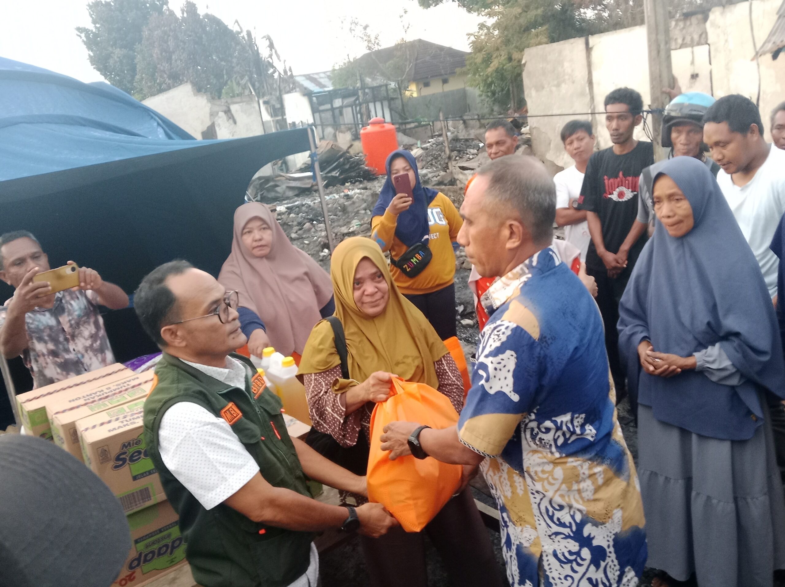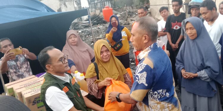 “Hari pertama belum bisa pembagian bantuan karena kondisi lapangan yang masih berasap dan segala macam. Hari ketiga kita lakukan pembersihan langsung kita pasang tenda sekalian pembagian kebutuhan dasar berupa beras, sarimi, minyak goreng, telur dan sebagainya, “ujar Bahrum kepada wartawan di lokasi.