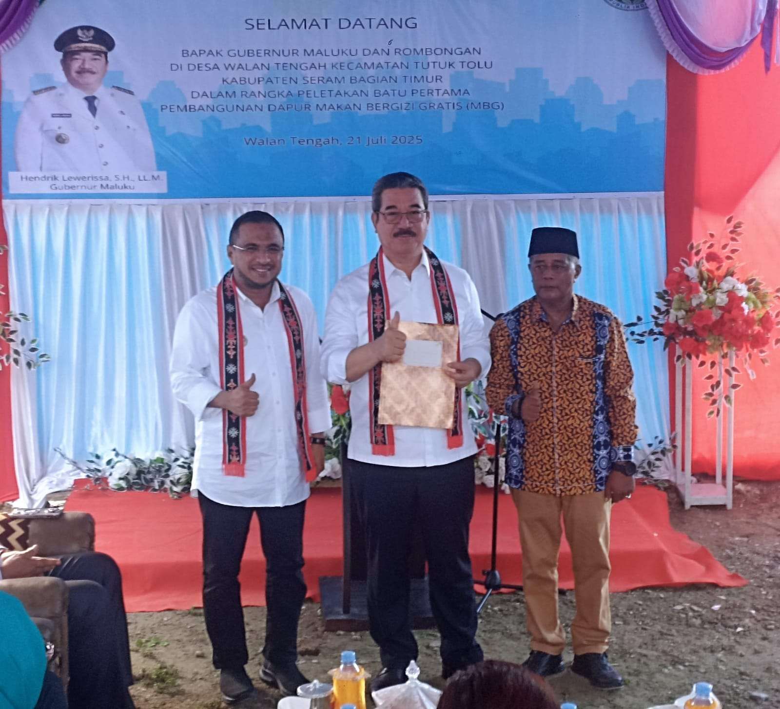 PORTALNUSAINA.COM,BULA-Gubernur Maluku Hendrik Lewerissa melakukan pelatakan batu pertama pembangunam dapur Makan Bergizi Gratis (MBG) di desa Walang Tengah, kecamatan Tutuktolo, kabupaten Seram Bagian Timur (SBT), Maluku pada Senin (21/7/2025).