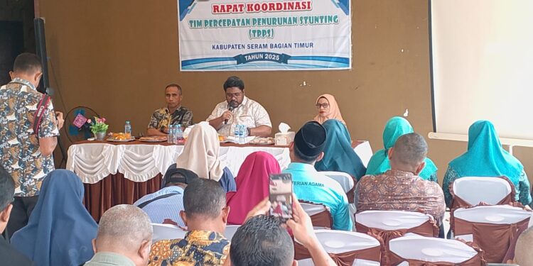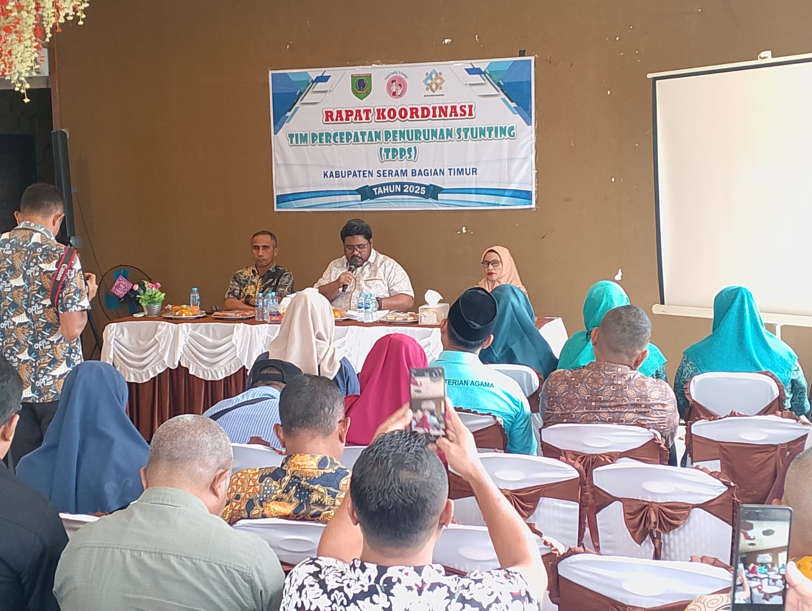 PORTALNUSAINA. COM, BULA-Wakil Bupati Seram Bagian Timur (ST), Maluku M. Miftah Thoha R Wattimena menghadiri Rapat Koordinasi Tim Percepatan Penurunan Stunting (TPPS) kabupaten Seram Bagian Timur (SBT) tahun 2025 yang digelar di Sigafua Resto, kota Bula, Kamis (28/8/2025).