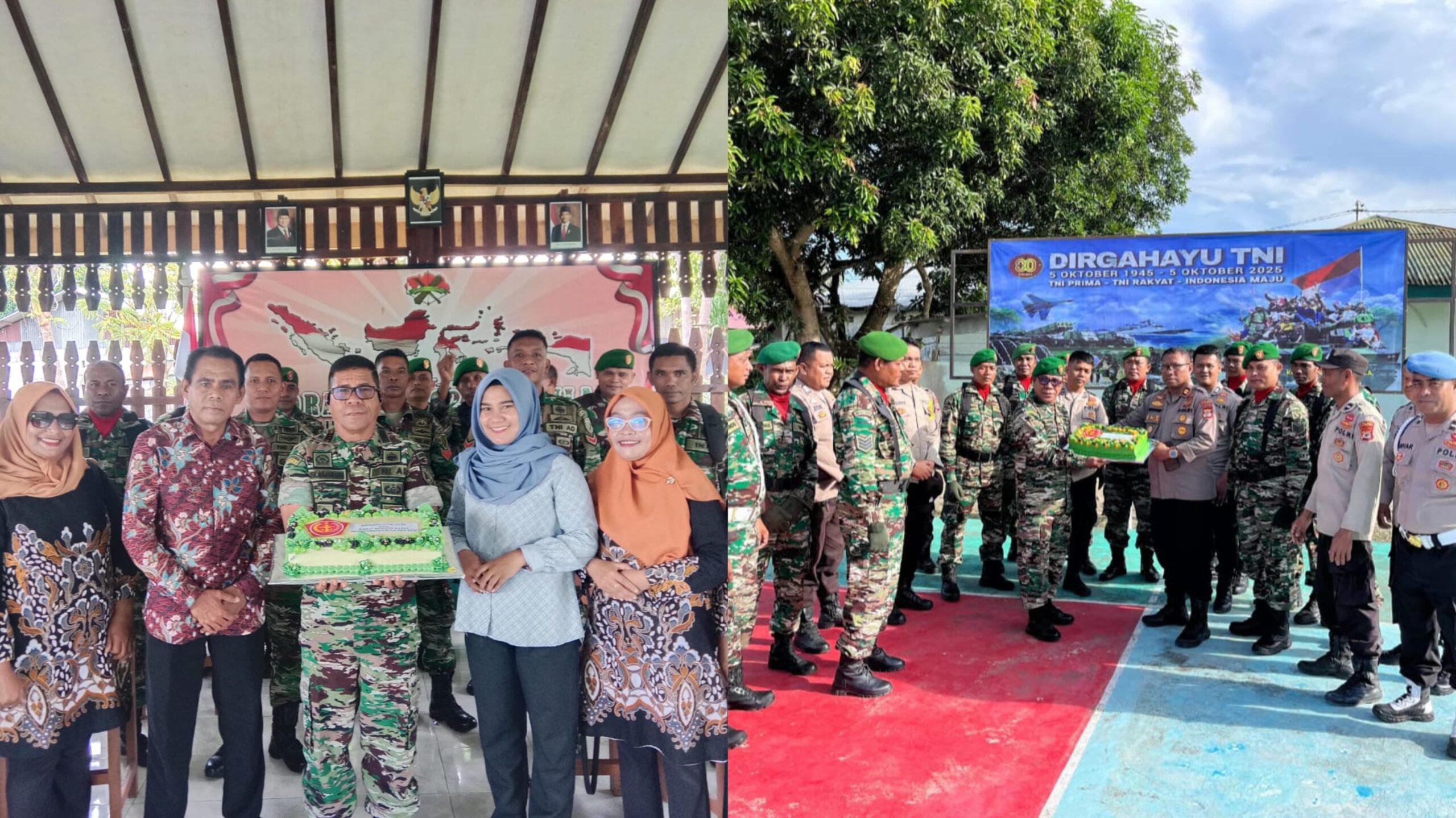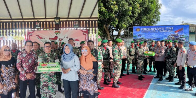 PORTANUSAINA.COM,BULA- Momen peringatan Hari Ulang Tahun (HUT) ke-80 Tentara Nasional Indonesia (TNI) di Makoramil 1502-06/Bula, Kabupaten Seram Bagian Timur berlangsung dalam suasana yang hangat dan penuh keakraban, Minggu (5/10/2025).